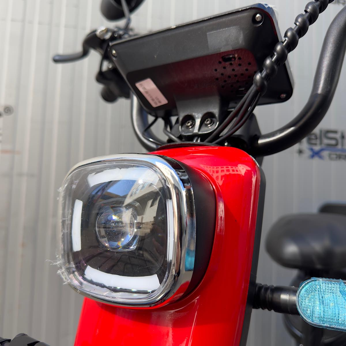 Допълнителна информация- Луксозна окомплектовка: мигачи със звукова сигнализация - Дигитален LCD дисплей с 5 параметъра - Сгъваеми степенки, -Облегалка задната седалка- - Три скорости - - Предна и задна спирачка - - Големи балонни гуми - - Мигачи - - Стоп - - Багажно джобче на рамката - - Супер олекотен - - Верига и педали - - Предни - задни амортисьори - - Мощен LED преден фар- - Удобни кожени предна и задна седалка с облегалка - - Клаксон - Зарядно специално за батерията *При закупуване- ПОДАРЪК: огледала за задно виждане (2бр.) дистанционно с аларама (2бр.) метална кошница за пазар с капак механизъм за заключавне на задната гума + ключ с фенерче