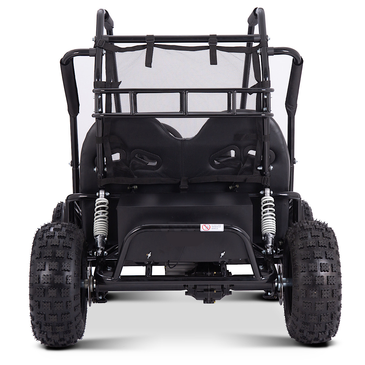 TelStar Kart-15 60V е мощно електрическо ATV бъги, създадено за офроуд приключения и максимално удоволствие от карането. С подсилена конструкция, хидравлично окачване и стабилни офроуд гуми, това бъги предлага надеждност и комфорт върху всякакви терени – трева, чакъл, пясък или асфалт. Двойната седалка с предпазни колани и здрава защитна клетка осигуряват безопасност и стабилност при всяко каране.