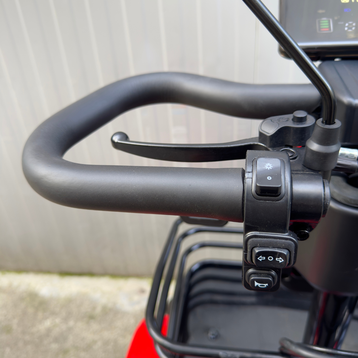 Допълнителна информацияУдобен волан, задно предаване, с диференциал - брой места: 3 - местна , спирачна система: 1 крачна и 2 ръчни спирачки за по-удобно спиране + магнитно спиране + задна скорост - аварийни светлини - странични светлоотразители - пълна светлинна окомплектовка ( преден двоен LED фар тип ЛУПА , мигачи- предни, задни, стопове, габарити) - клаксон - метална кошница за багаж отпред и отзад - Подарък- 2 бр. огледала за задно виждане + 2бр. дистанционни с аларма и безконтактно включване + Професионално процесорно зарядно за модела