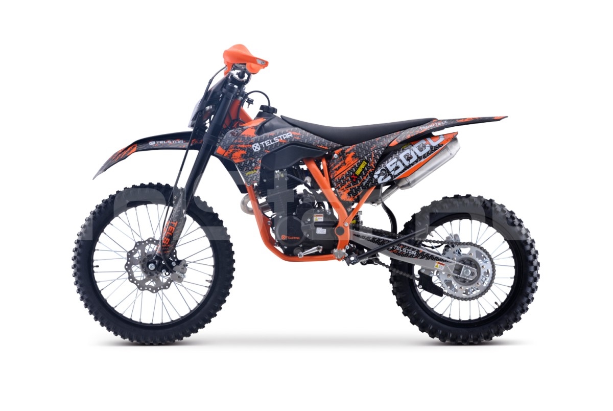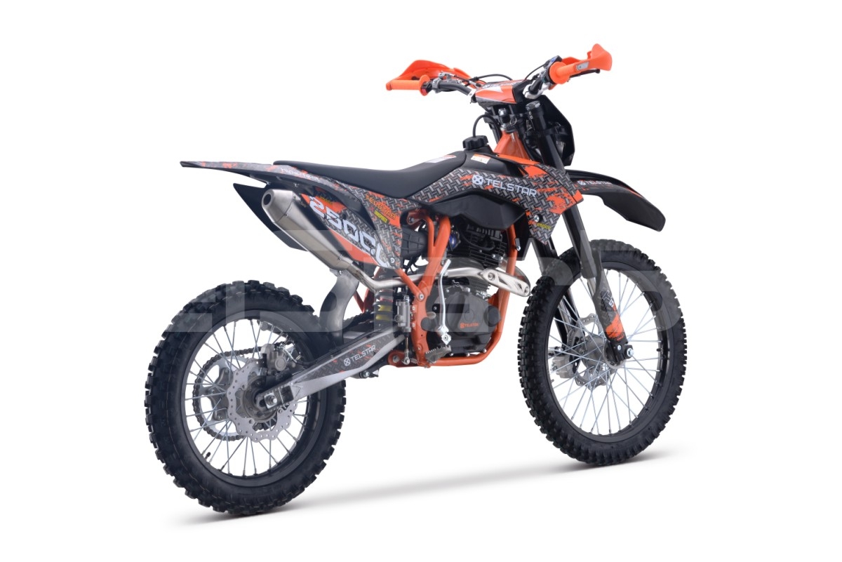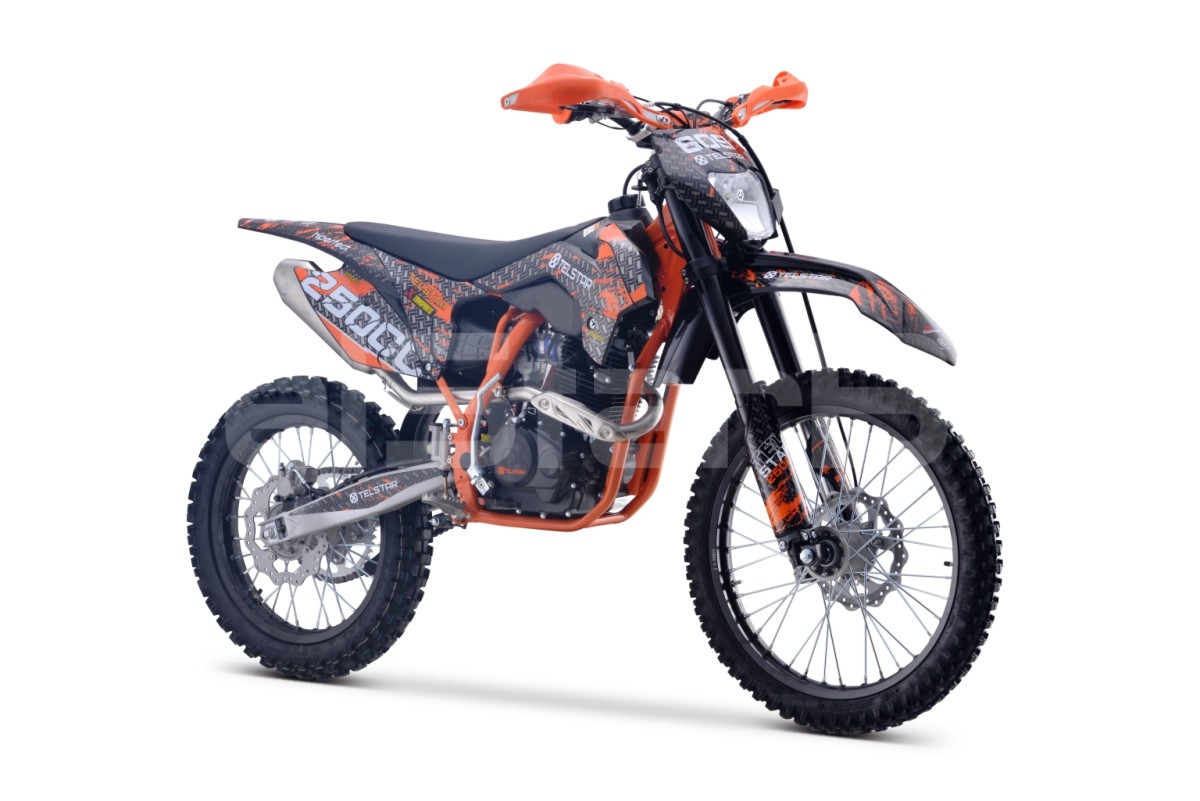 Ново на пазара за ендуро  ! Представяме на вашето внимание Мотоциклет 250CC 4 stroke TELSTAR GAS ENDURO CROSS. Мотоциклетът е изграден върху издръжлива рамка тип KTM, изработена от хром-молибденова стоманена сплав. Изпитаният във времето двигател Zongshen беше използван като задвижващ агрегат. Карбураторът NIBBI  е отговорен за приготвянето на горивната смес. Здрави джанти с подсилени джанти от алуминиева сплав. Агресивният протектор на офроуд гумата Yangsing с мощни грайфери ще ви позволи да преодолявате трудни офроуд зони. Високата седяща позиция на водача осигурява удобно управление на мотора. Стандартните окачвания на този мотор ще осигурят плавно и меко каране извън пътя. Фарът перфектно осветява пътя в тъмното. Висококачествен ауспух придава приятен и басов звук на ауспуха. Яркaта  оригинална графика на мотора ще ви направи видими на пътя и ще привлече вниманието на минувачите. Страхотен мотор Enduro без конкуренция за цената. Един от най-достъпните в тази конфигурация и размер в момента. Страхотен вариант да започнете вашата професионална ендуро кариера и страхотен за активни развлекателни дейности сред природата.