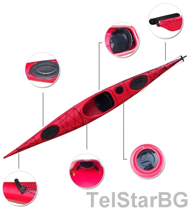 Едноместен туристически спортен кану - каяк SEMIK с рул и регулируеми педали