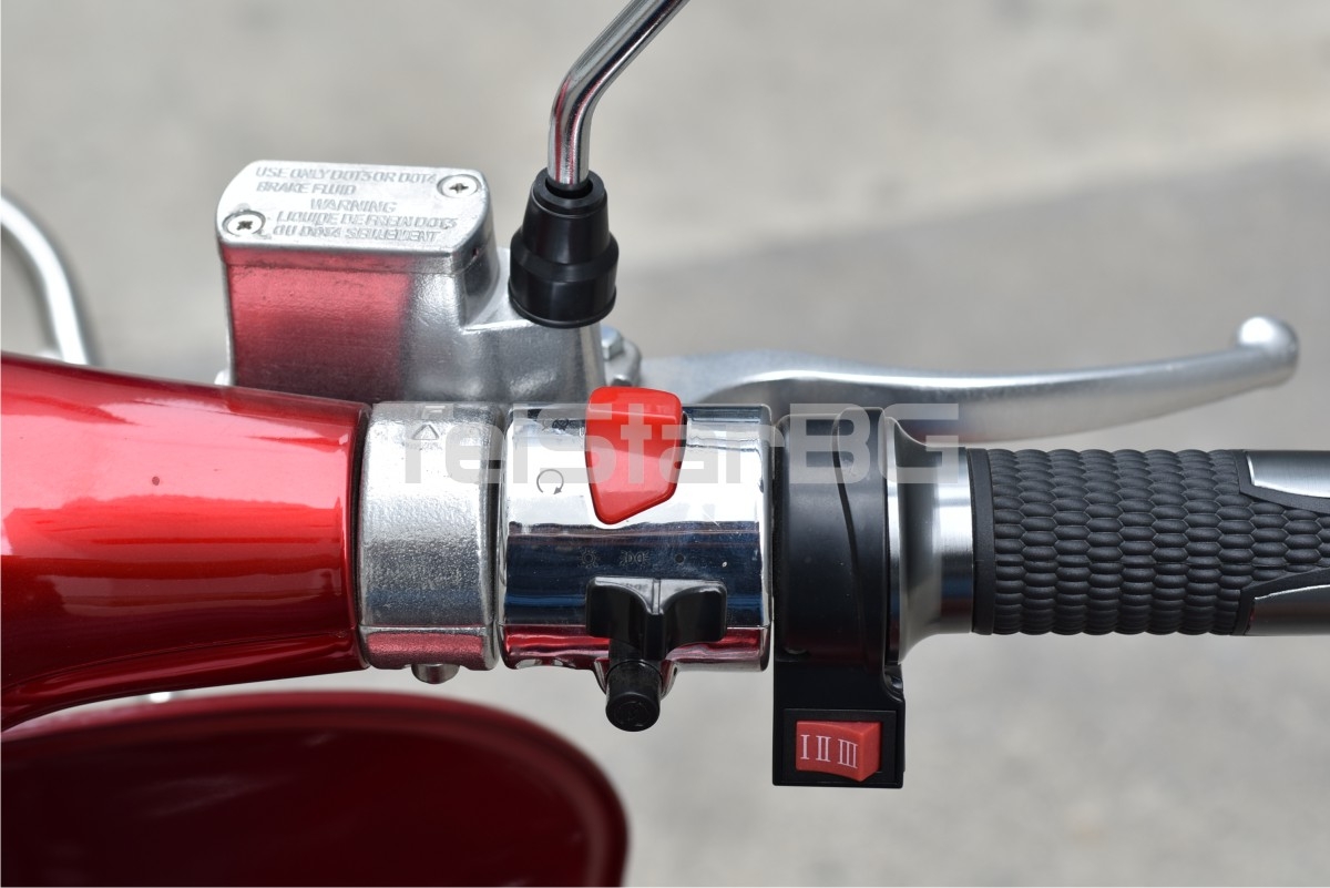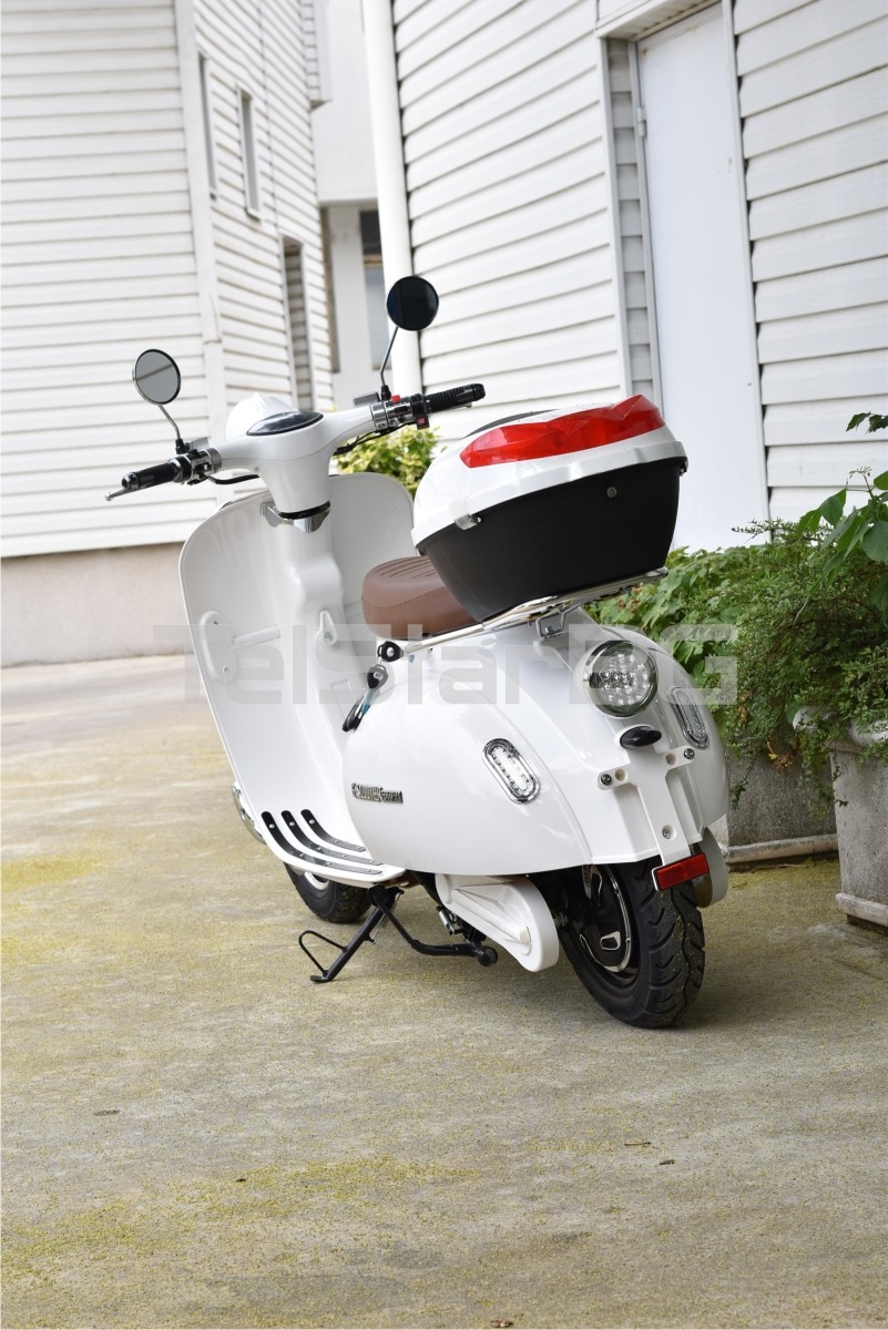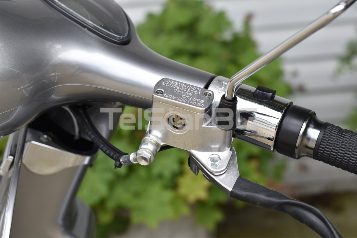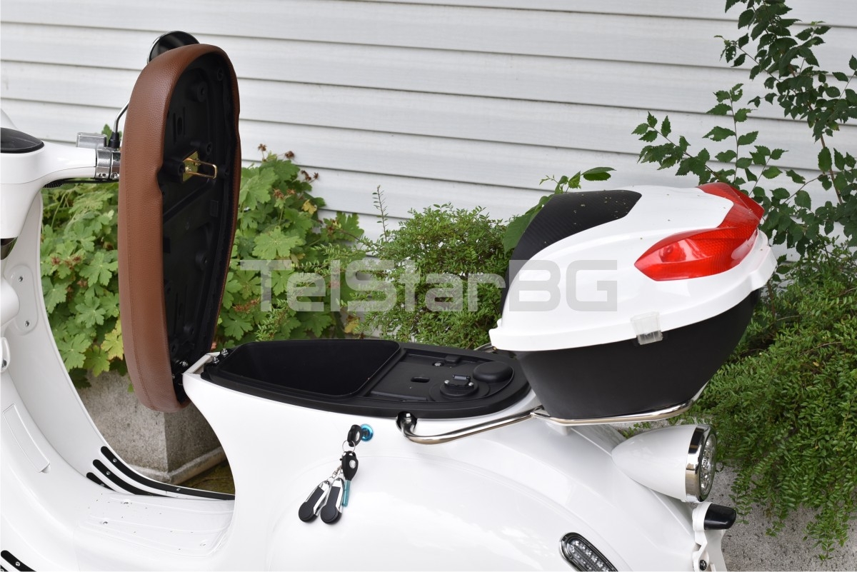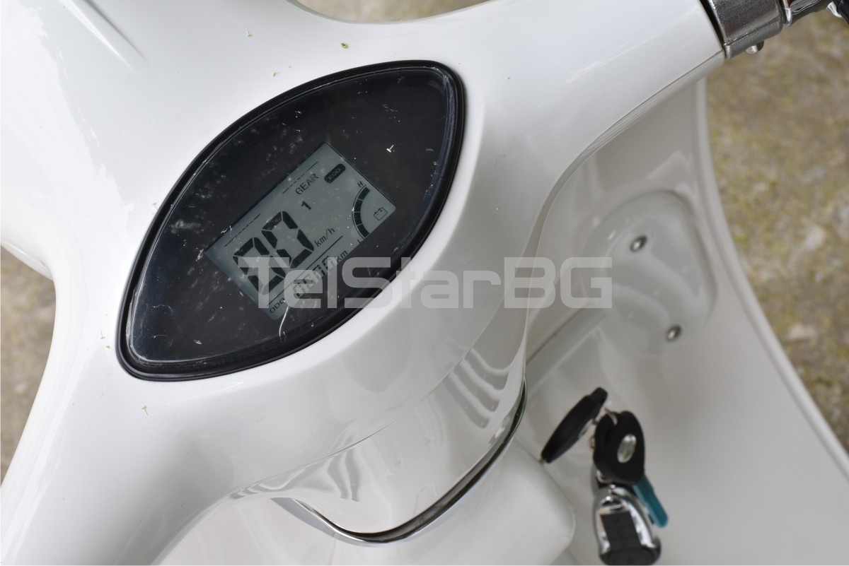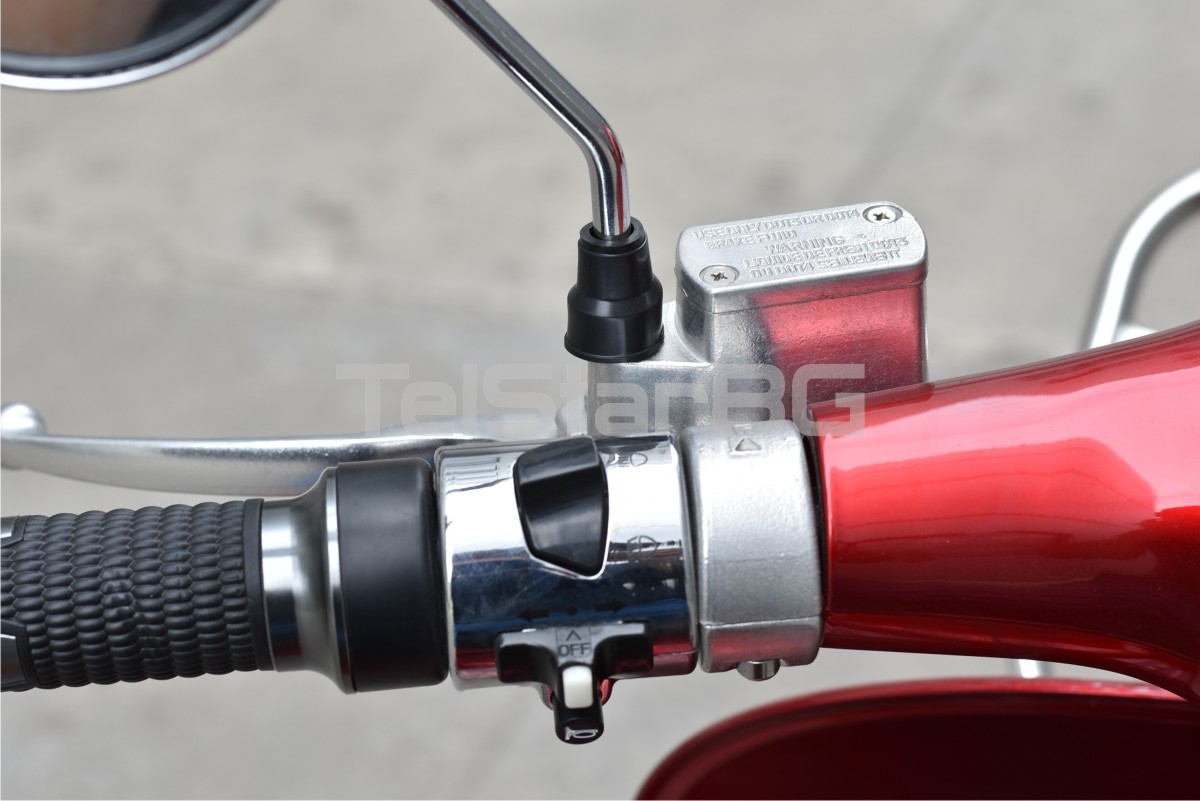 | Допълнителна информация | пълна светлинна окомплектовка- преден фар, заден стоп, предни и задни мигачи, габарити, къси и дълги светлини - светещ дисплей с показания за скорост, ниво на батерия, изминато разстояние, пътепоказатели, светлини и др. - товарен отсек под седалката - аларма/дистанционно управление 2 бр. подарък към ключовете при закупуване - зарядното устройство е включено в комплекта - предни и задни амортисьори - голяма задна кутия за багаж или каска С включени никелирани преден и заден оригинален Веспа метален багажник +190лв Пластмасов куфар + никелирани огледала подарък! |