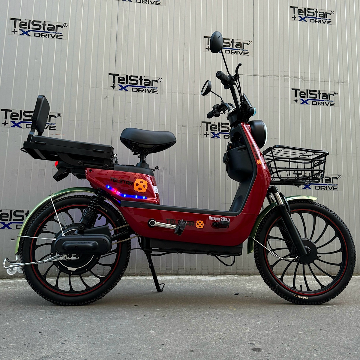 Допълнителна информация- Луксозна окомплектовка: мигачи със звукова сигнализация - Дигитален LCD дисплей с 5 параметъра - Сгъваеми степенки - Облегалка задната седалка - три скорости - предна и задна спирачка - големи балонни OFFROAD гуми - мигачи - стоп - багажно джобче на рамката - LED светлини на рамката - верига и педали - предни - задни амортисьори с голям ход - мощен LED преден фар - удобни кожени предна и задна седалка с облегалка - задната седалка се превръща в карго отделение за багаж - клаксон - зарядно устройство специално за батерията *При закупуване- ПОДАРЪК: огледала за задно виждане (2бр.) дистанционно с аларама (2бр.) метална кошница за пазар с капак