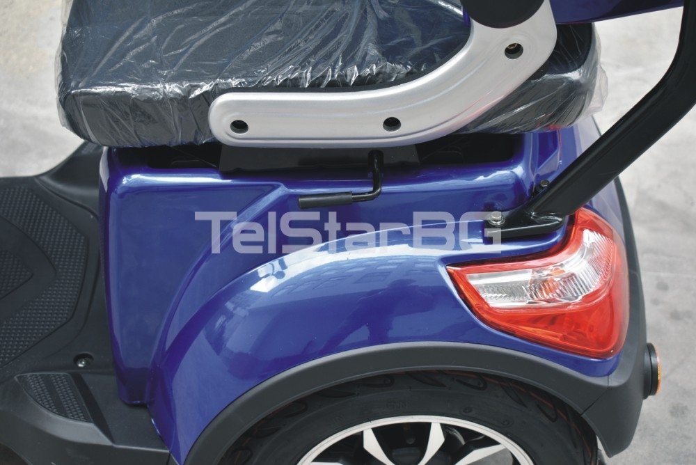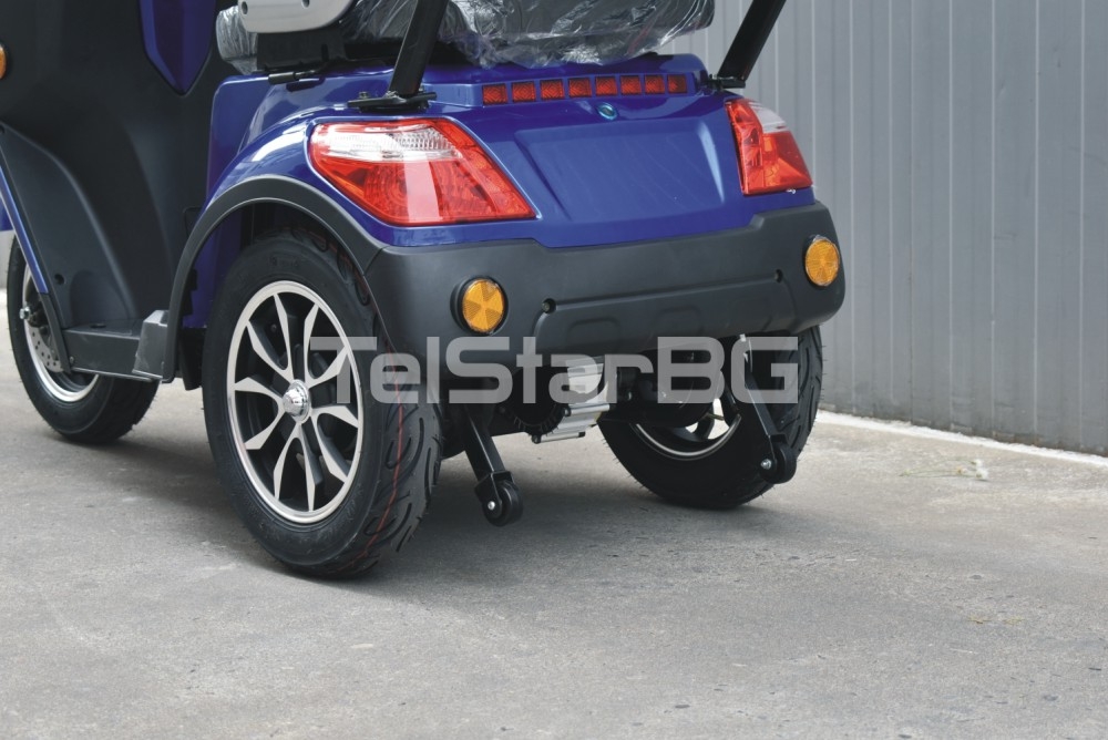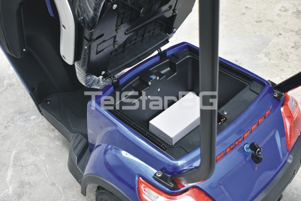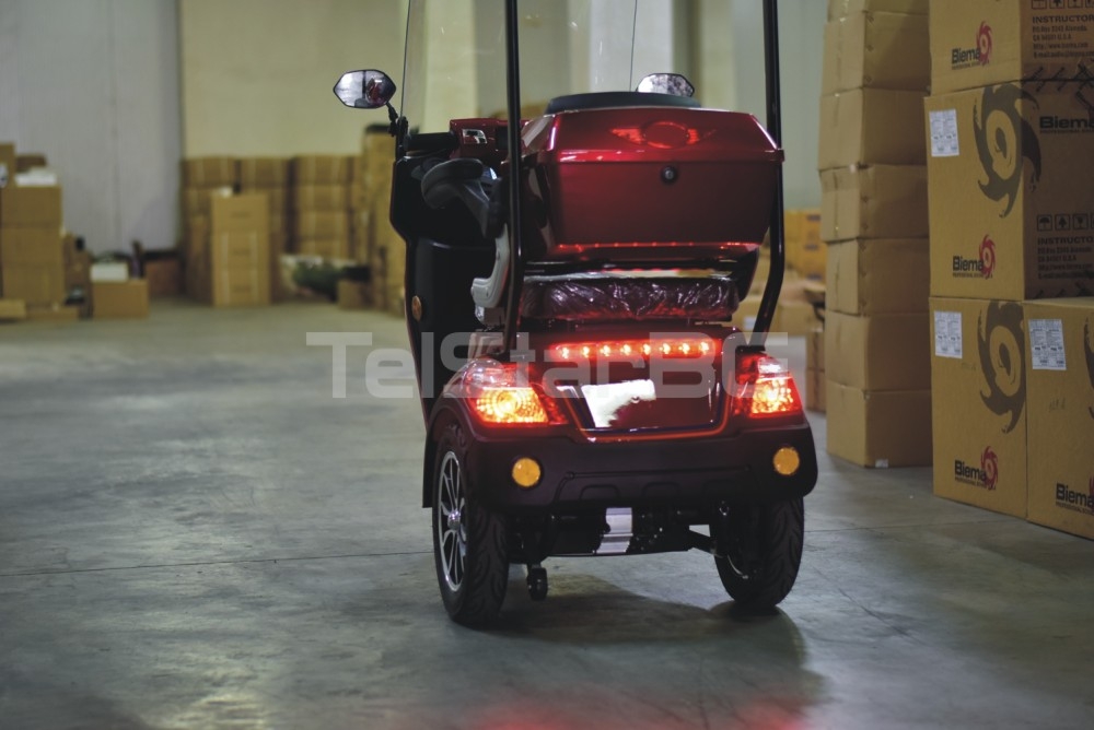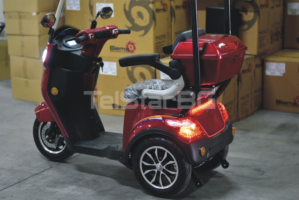 Допълнителна информация- задно предаване, с диференциал - големи гуми - покрив и предно стъкло - клаксон - пълна светлинна окомплектовка - огледала 2 бр. подарък при закупуване на триколката - дигитален дисплей с показания за скорост, изминато разстояние, заряд на батерията - предни дискови спирачки - с 3 скорости скорости + задна - USB порт, подходящ за зареждане на мобилни устройства и телефони - луксозно кожено кресло с подлакътници - голям товарен отсек отзад за багаж - налична в цветове: бял, червен металик (бордо) , син металик