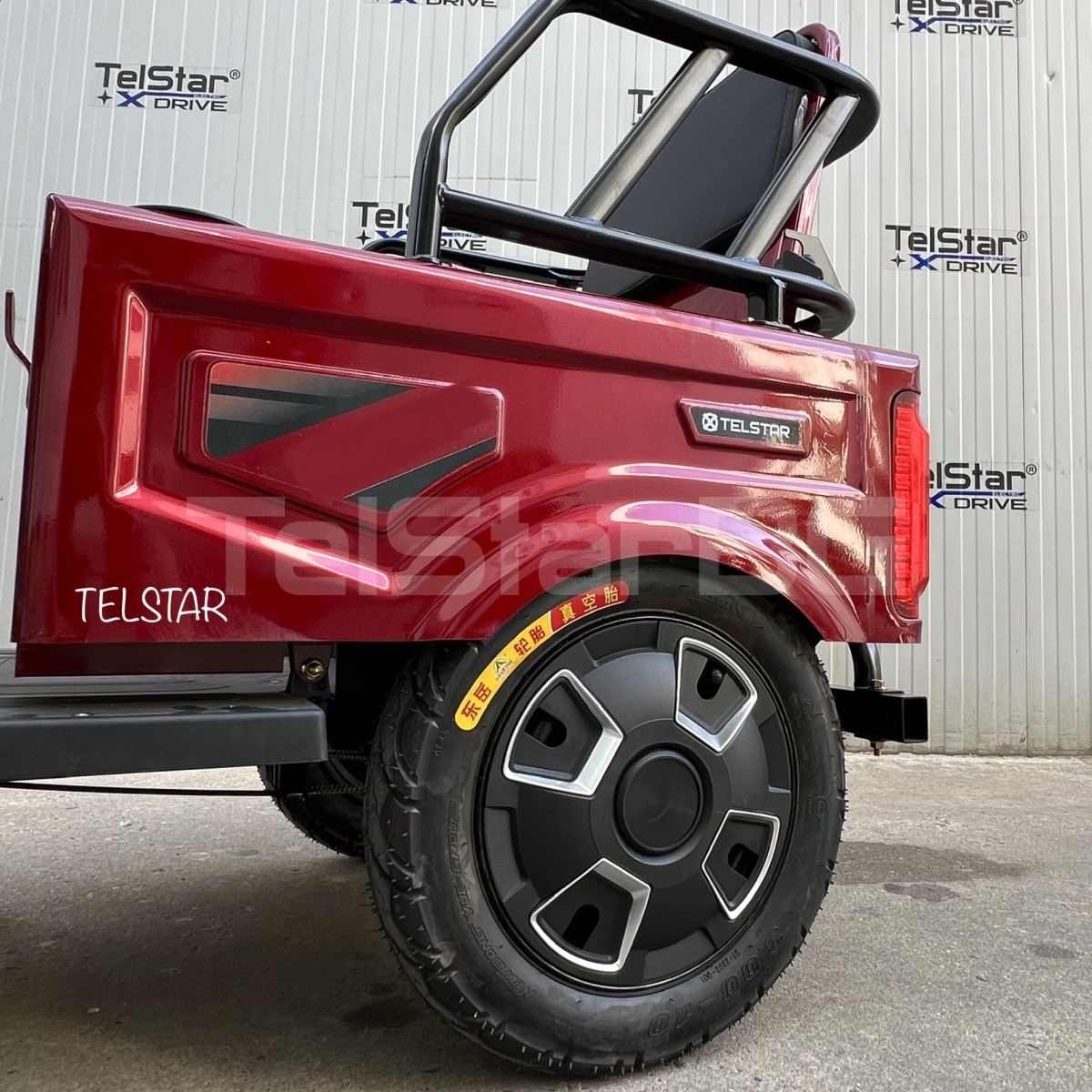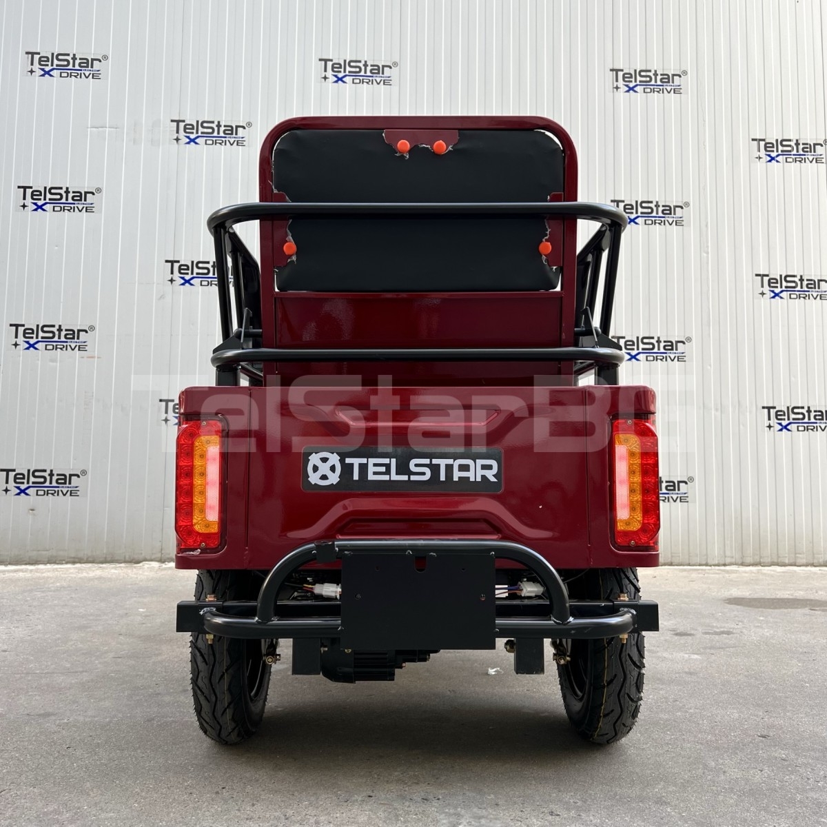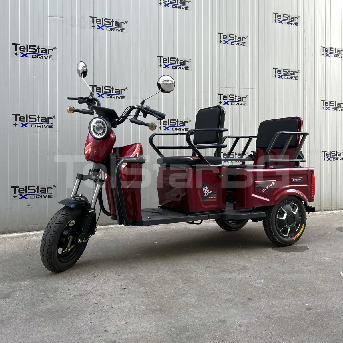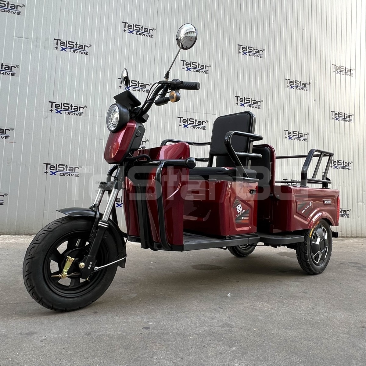 Оригинална електрическа триколка- две места + карго отделение с изключително висококачествена изработка. Задната седалка се превръща в удобно карго багажно отделение с 1 движение. Прахово нанасяне на боята по електролитна технология. Триколката се предлага и във вариант със лесна за монтаж и демонтаж покривна конструкция.
