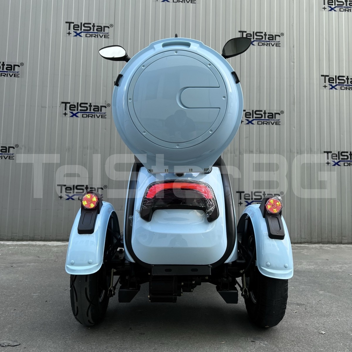 Допълнителна информация- задно предаване, с диференциал - брой места: 3- местна - спирачна система: 1 крачна и 2 ръчни спирачки за по-удобно спиране - 3 скорости - аварийни светлини - паркинг режим (P) - дигитален дисплей тип apple - странични светлоотразители - задна скорост - пълна светлинна окомплектовка ( преден LED фар тип ЛУПА , мигачи- предни, задни, стопове, габарити) - клаксон - метална кошница за багаж отпред и отзад Подарък- огледала за задно виждане 2 броя при закупуване!