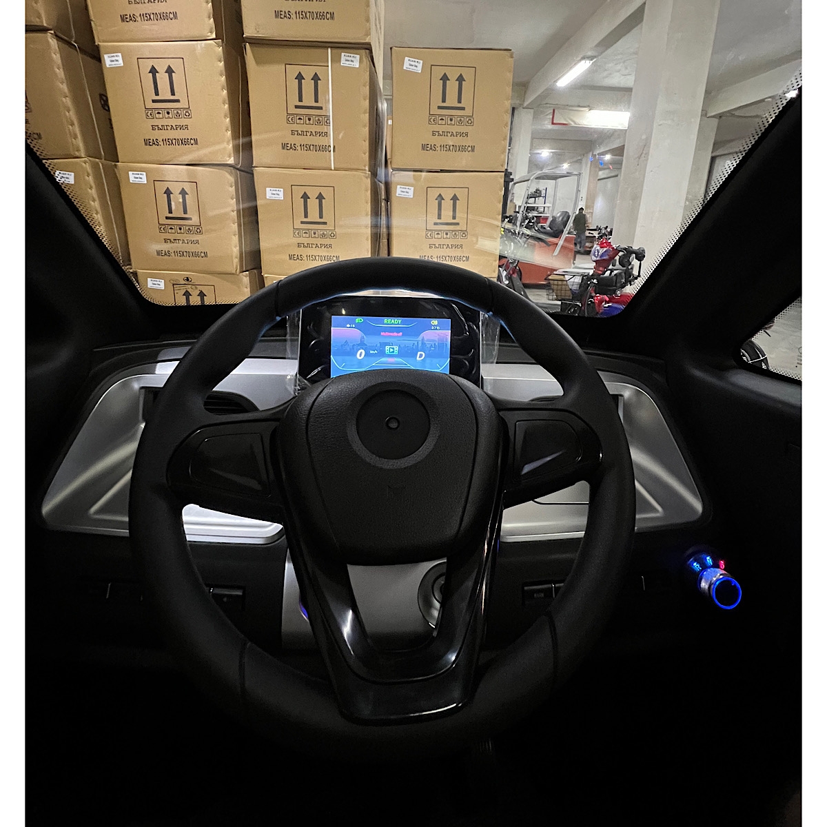 Допълнителна информацияБрой места: 3 - Голям ГОЛЯМ дигитален LCD дисплей на таблото показващ над 5 параметъра - Електрическа чистачка с три режима на работа + бутон за пръскане за почистване на предното стъкло - Пълна светлинна окомплектовка : Висок клас LED фарове, Мигачи, Стопове, Габарити, Аварийни светлини - Клаксон - USB port - Маслени дискови спирачки - Поставка за напитка на таблото - Огледала за задно виждане - CE сертификат + пълен пакет с документи за регистрация в КАТ. Възможност за бял или черен интериор при поръчка.