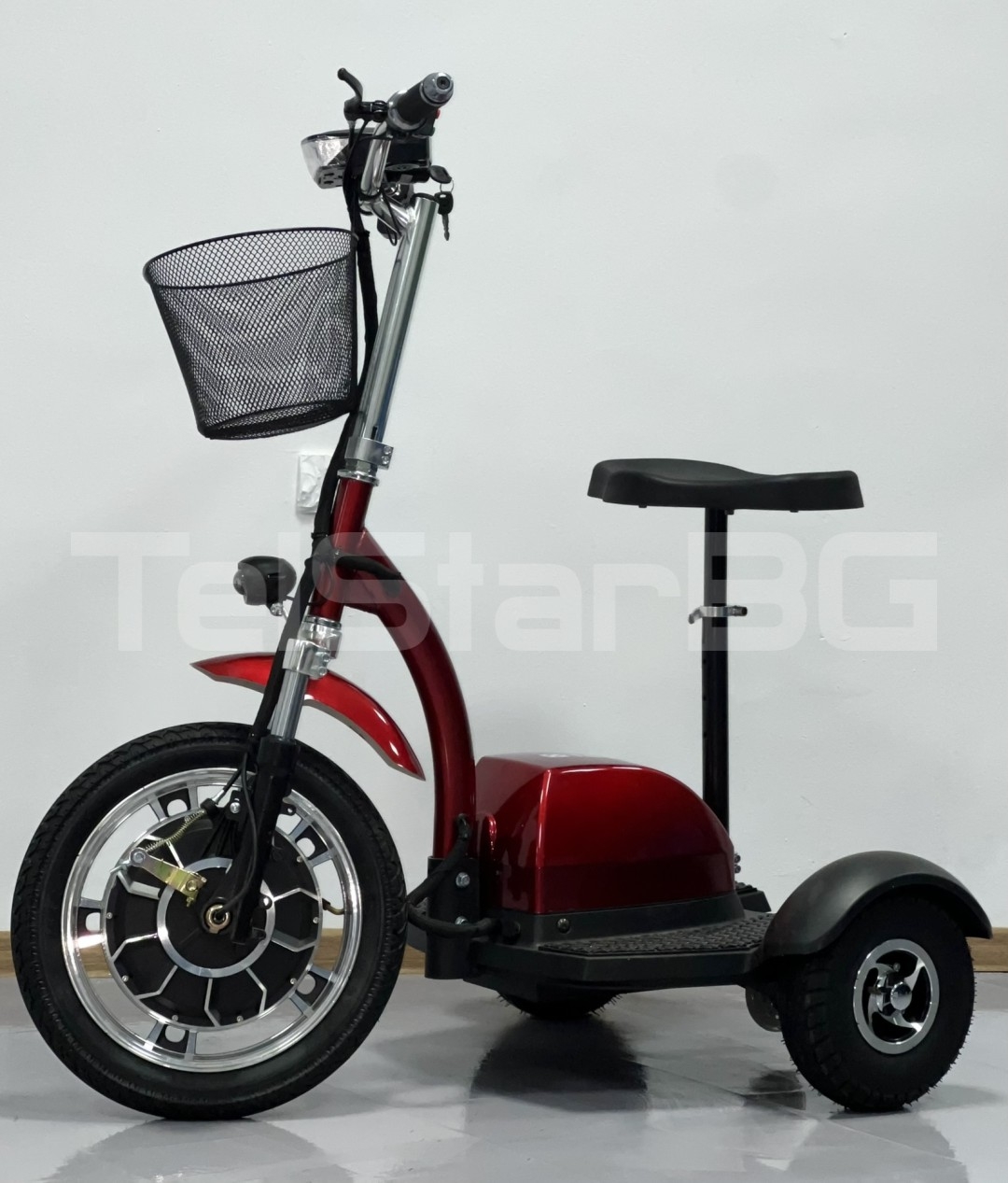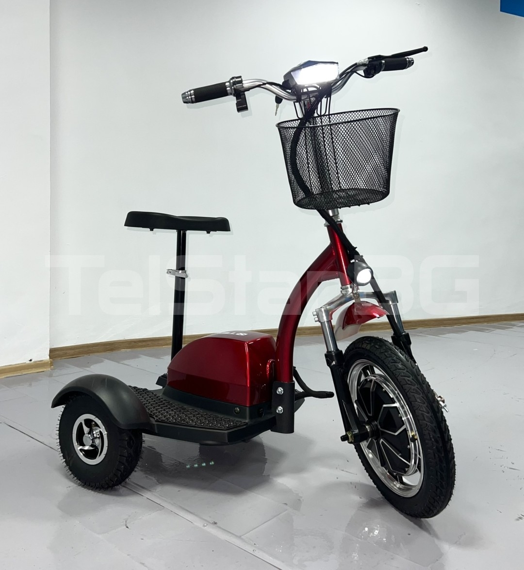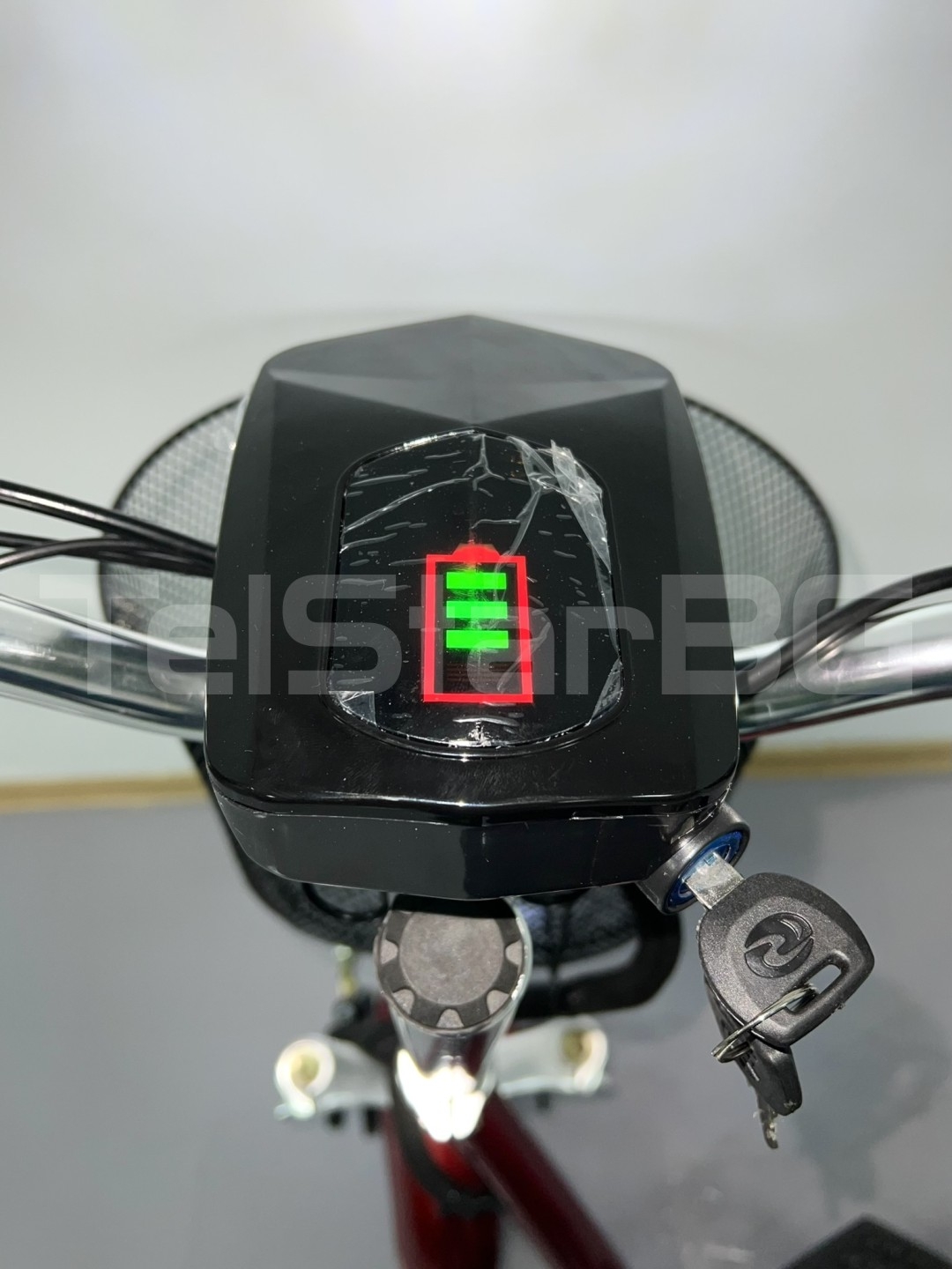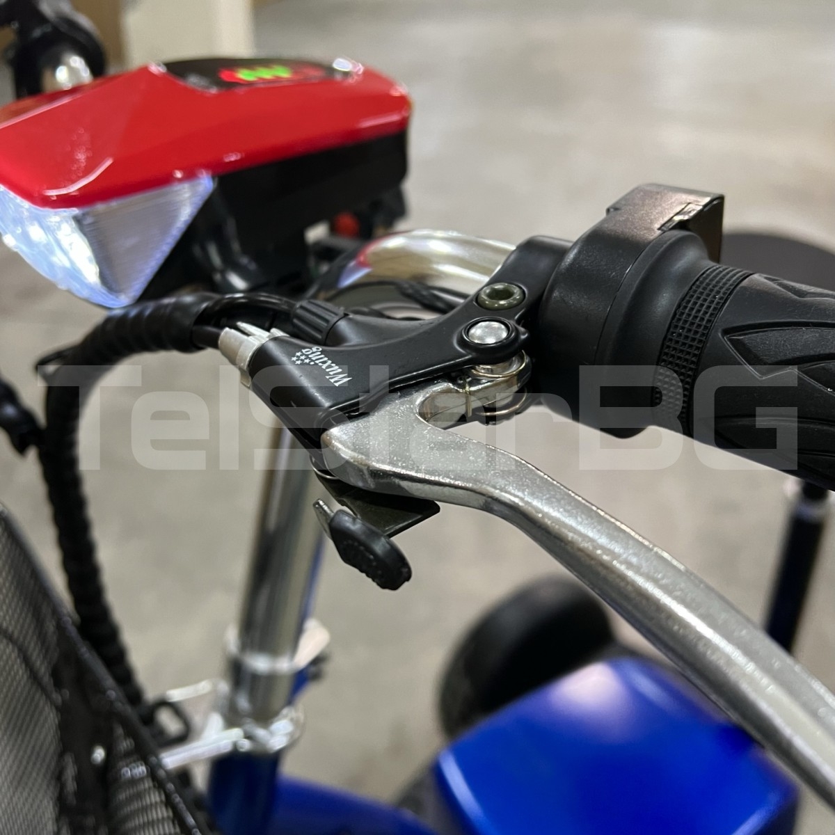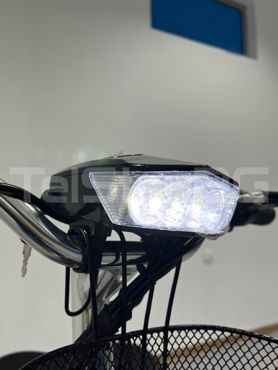 | Допълнителна информация | 3 предни + 1 задна скорост зарежда се от мрежата: 220V (зарядното е включено в комплекта) преден LED фар + дисплей с показание нивото на батерията ръчна спирачка * подарък при закупуване голяма предна пазарска кошница |