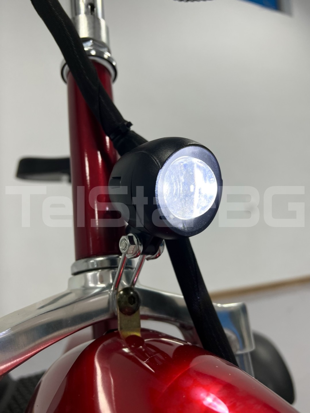 регулируемо кормило - три предни + 1 задна скорост - зарежда се от мрежата: 220V (зарядното е включено в комплекта) преден LED фар с индикатор за нивото на батерията + дисплей с показание ниявото на батерията ръчна спирачка