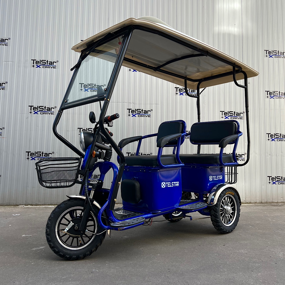 Оригинална соларна карго четириместна електрическа триколка TS-005.3 1500W 60V 23Ah, карго багажно отделение. Модел 2025 година. Високопроизводителни батерии от последно поколение BLACK GOLD с увеличен капацитет.