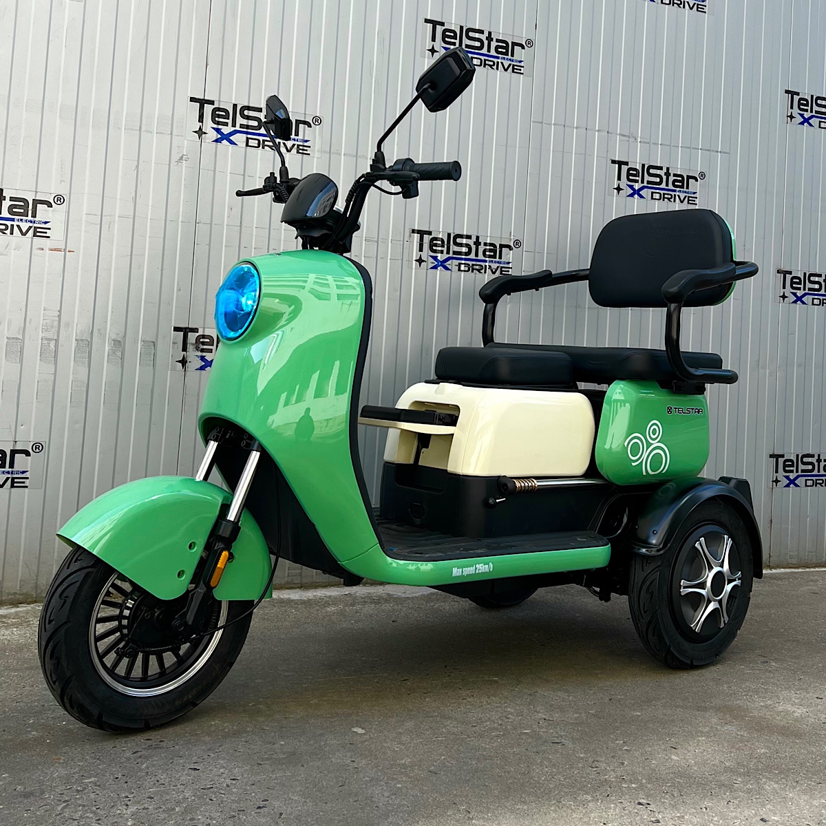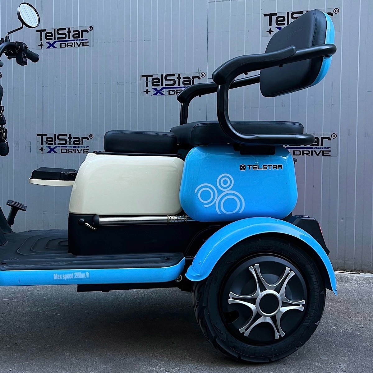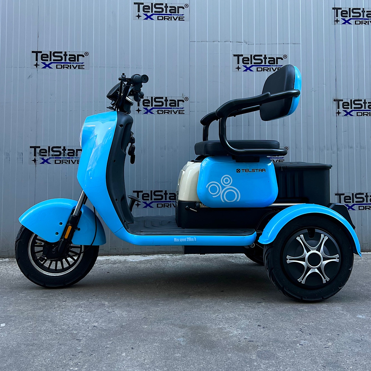Задната седалка се превръща в удобно багажно отделение с 1 движение. Прахово нанасяне на боята по електролитна технология. Триколката се предлага и във вариант със лесна за монтаж и демонтаж покривна конструкция.