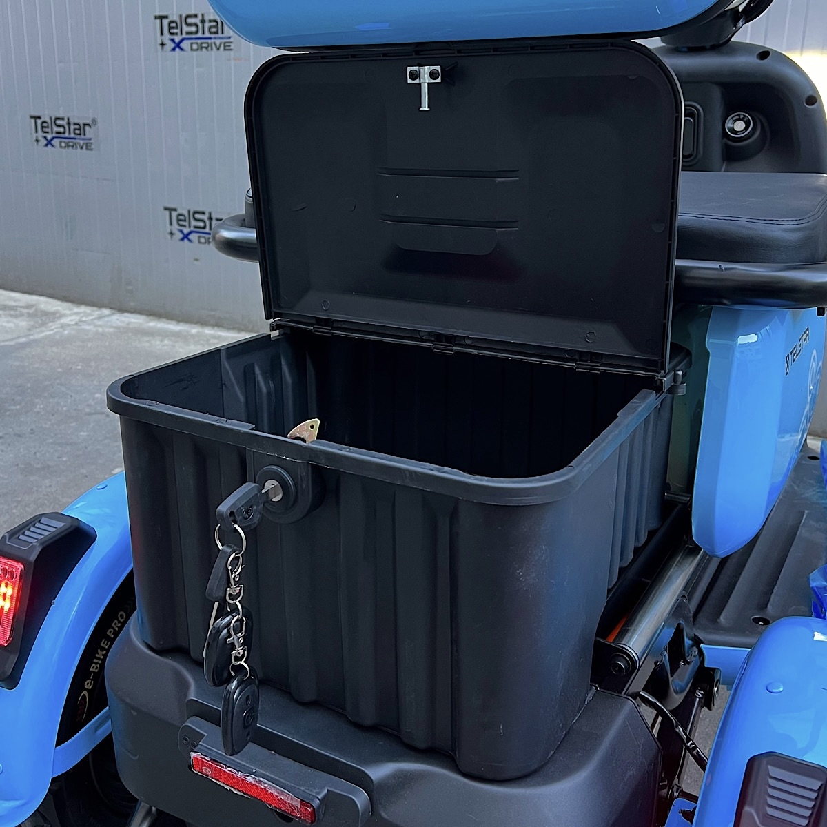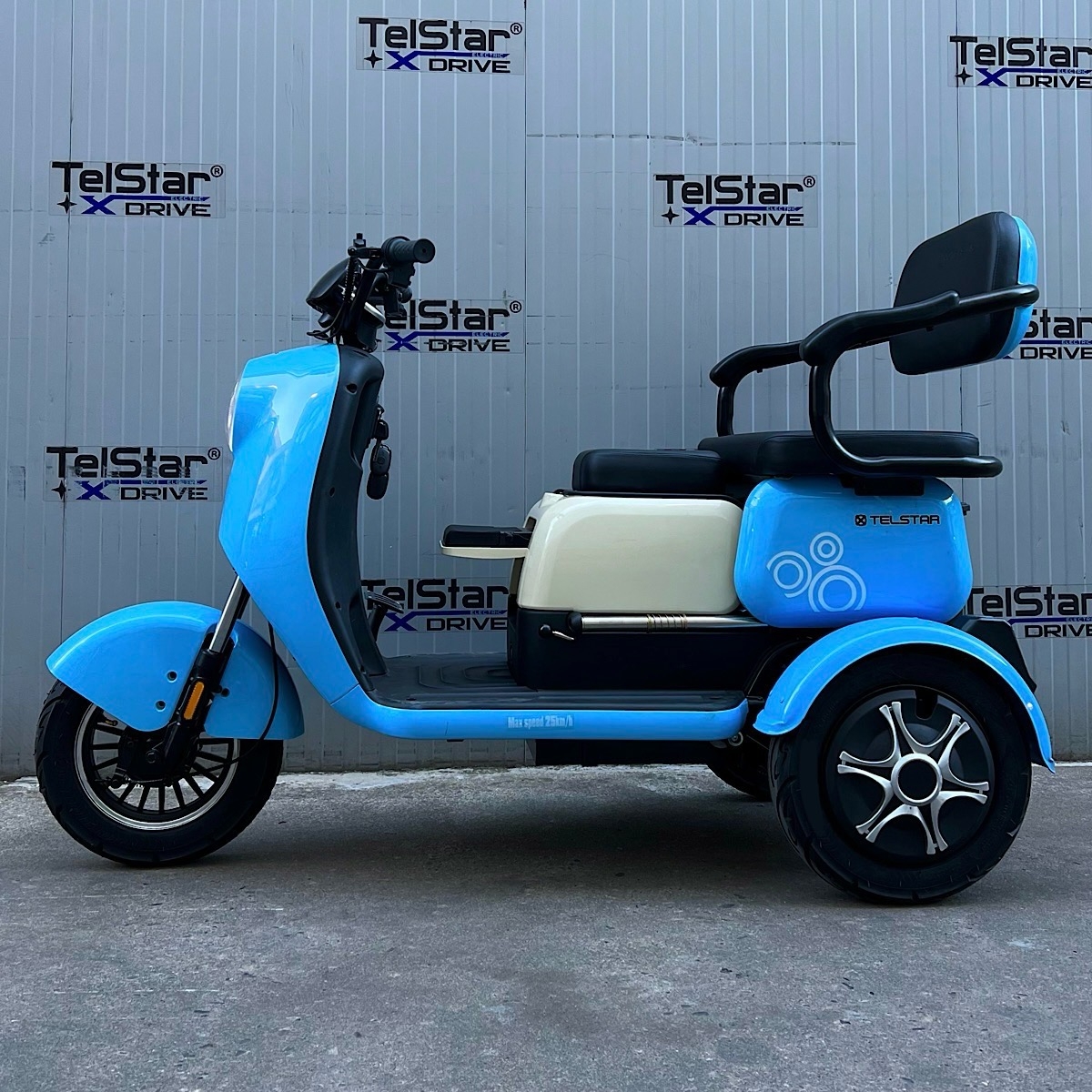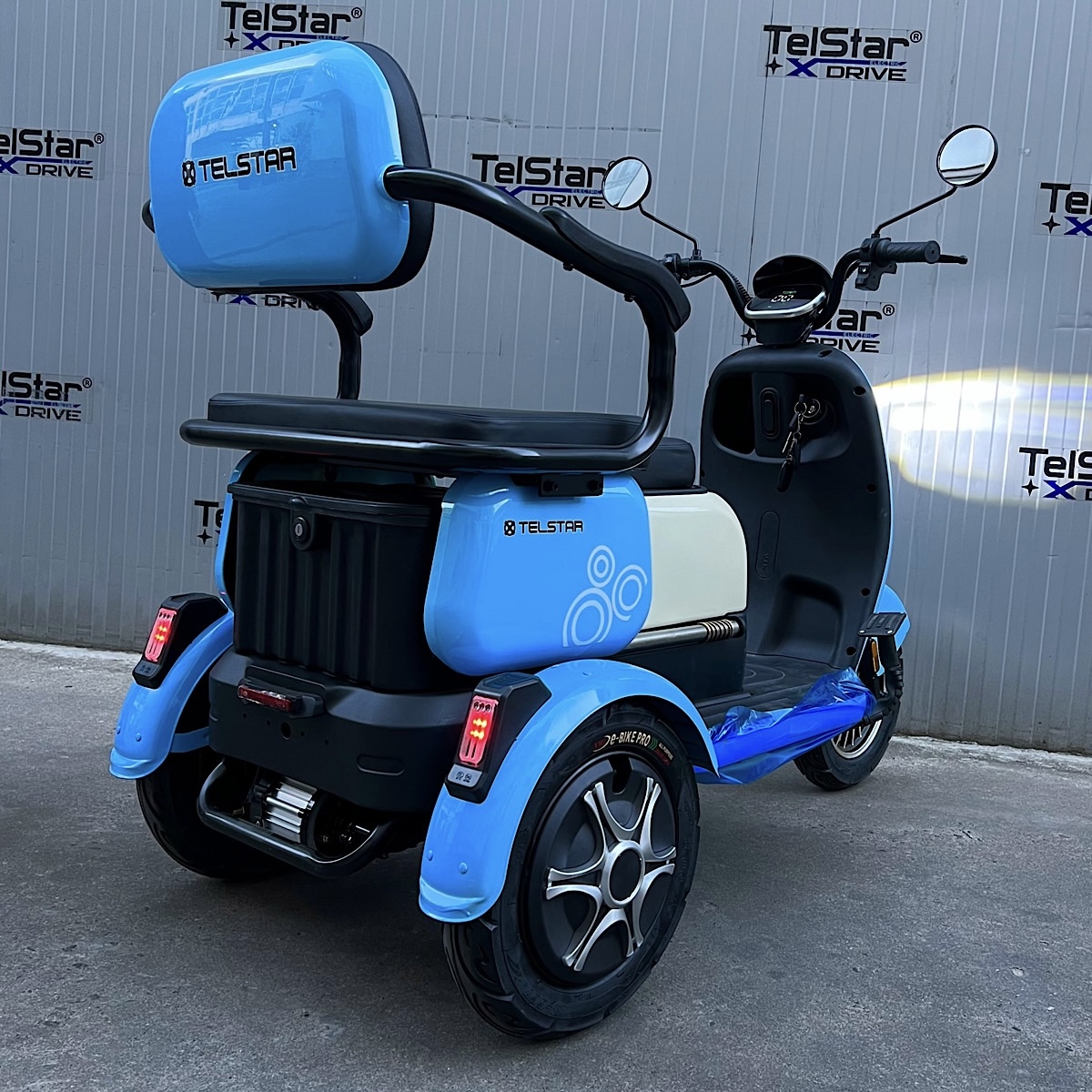 Задната седалка се превръща в удобно багажно отделение с 1 движение. Прахово нанасяне на боята по електролитна технология. Триколката се предлага и във вариант със лесна за монтаж и демонтаж покривна конструкция.