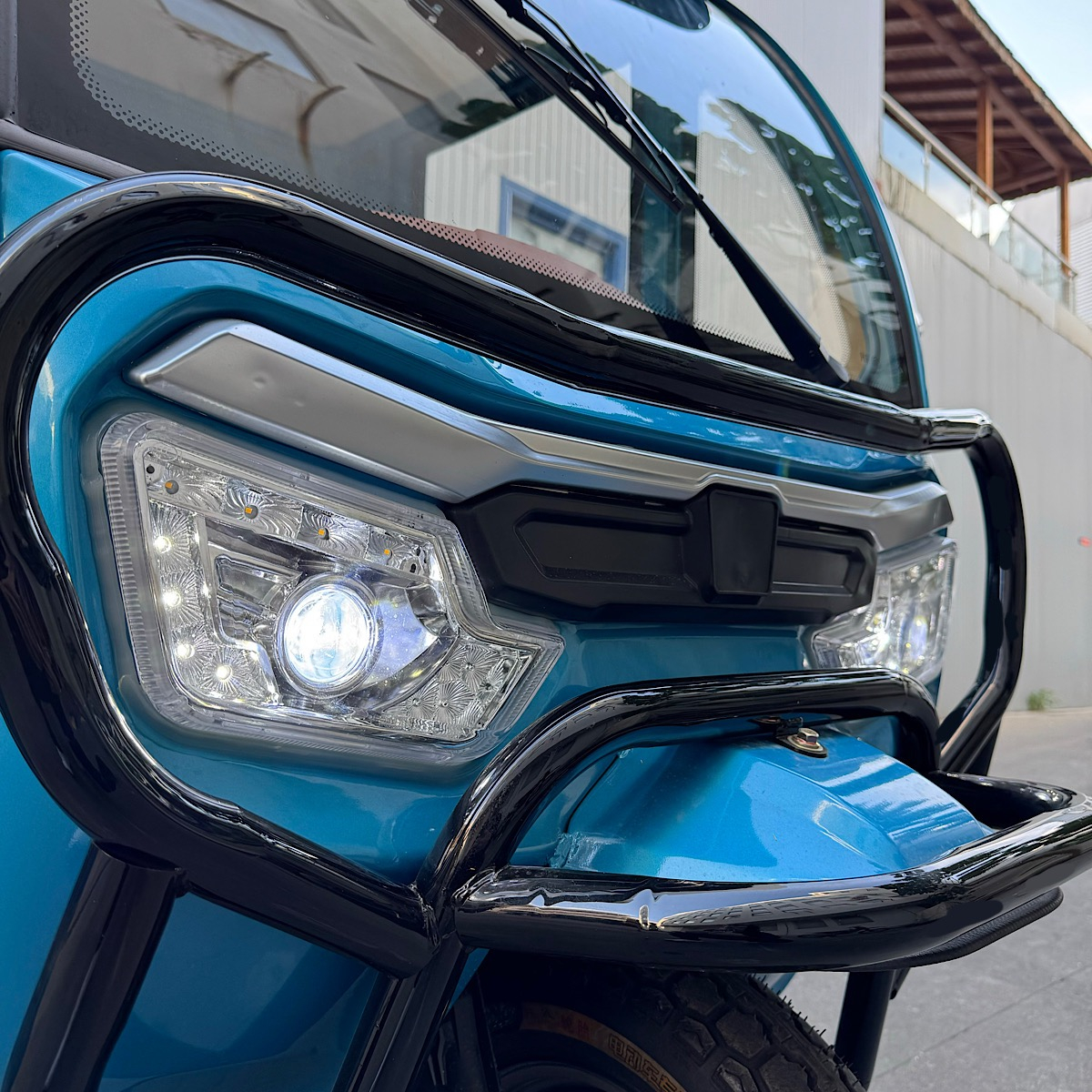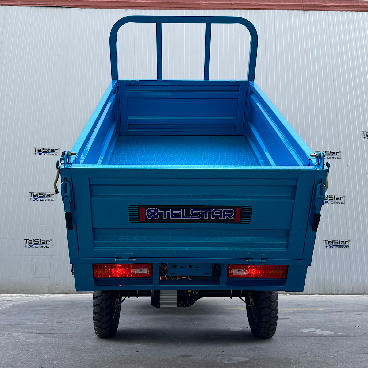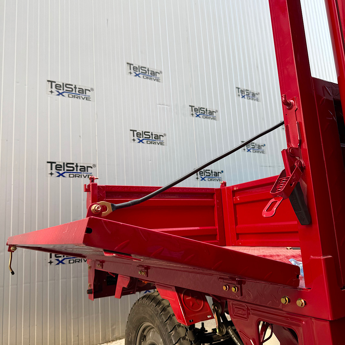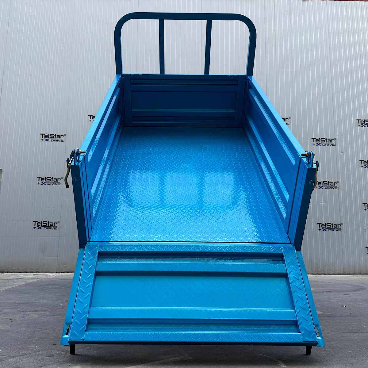 | Допълнителна информация | задно предаване, с голям диференциал, подсилено предно окачване, подсилено задно окачаване, големи балонни OFFROAD гуми за неравни терени с алуминиеви джанти, многолистови задни ресьори, клаксон, голям светлодиоден LED фарове с ЛУПА, предна подсилена амортисьорна вилка, дигитален LCD дисплей показващ скорост, заряд и волтаж на батерията, пробег, светлини, пълна светлинна окомплектовка- преден фар, гарбарит, стопове, предни /задни мигачи странични светлоотразители тристранни канати за по- лесно товарене и разтоварване, висок клирънс, аларма и светлинна сигнализация ъгъл на изкачване- 25° спирачна система- кормилна спирачка, крачна спирачка и ръчна спирачка за паркиране, външни размери на карго платформата:широчина 110см дължина 160см, цена за сглобяване 140лв |