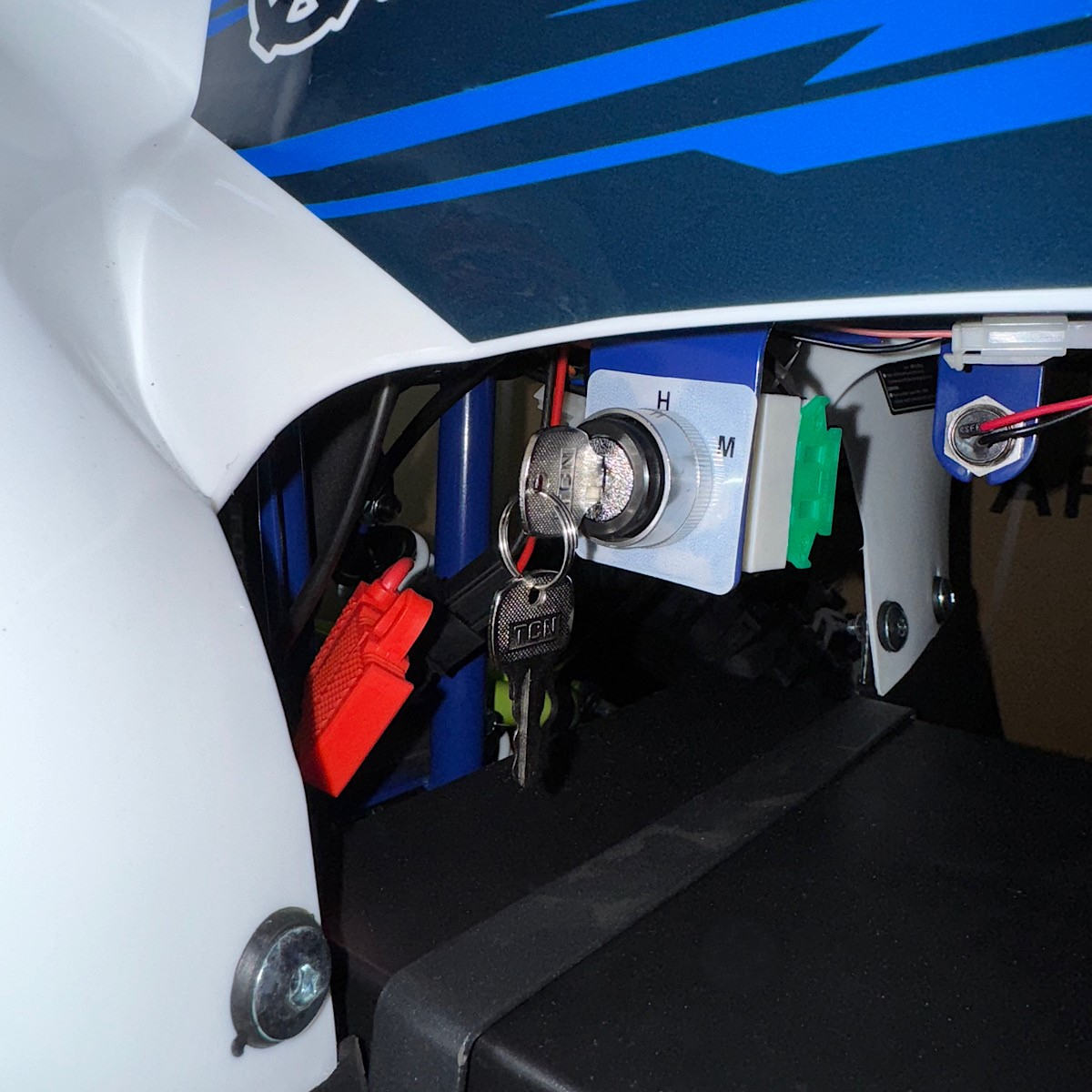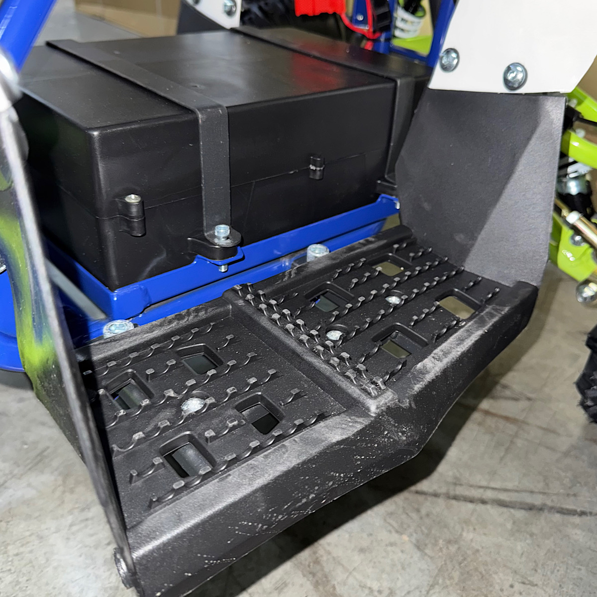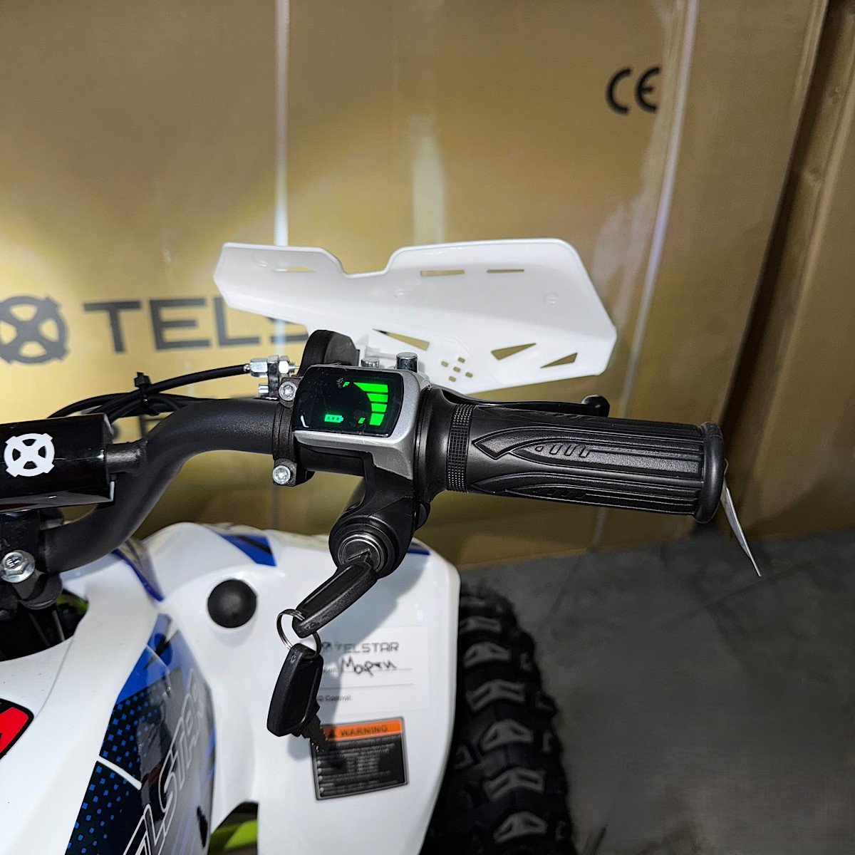 | Допълнителна информация | - LED предни фарове - светещ дигитален дисплей с показание за ниво на батерията - подаване на газ с дръжка (масур) - спирачна система: предни дискови, задна дискова спирачка - тристепенен родителски контрол за ограничаване на максималната скорост с ключ - клаксон - окачване с шарнири, не с втулки - задна скорост - височина на седалката: 55см. - зарядно специално за батерията |