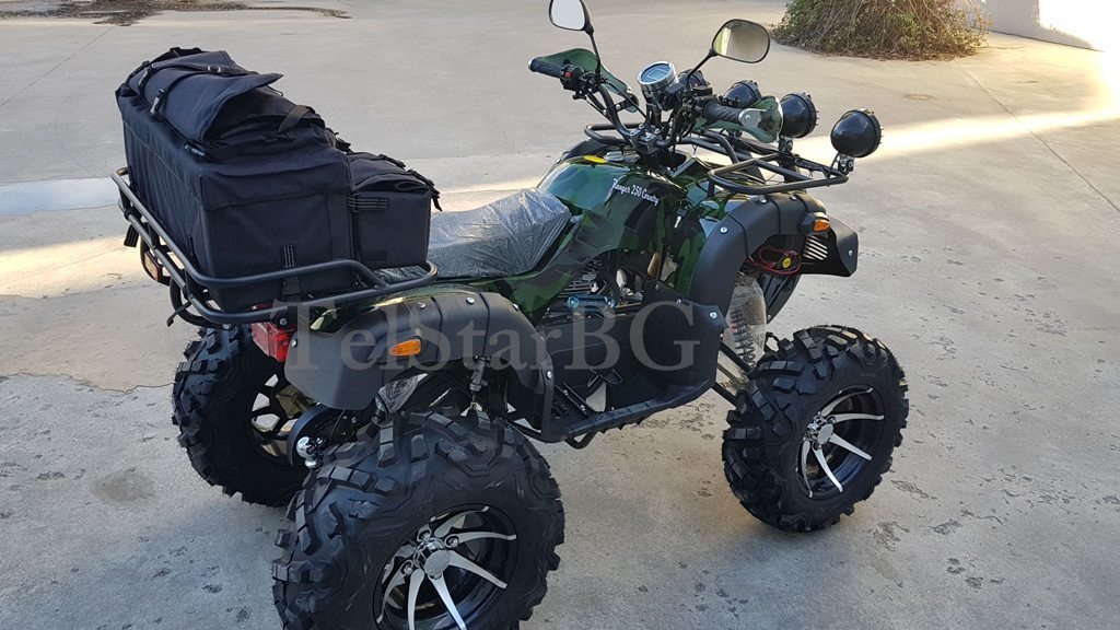 | Допълнителна информация | max. мощност: 13.0 / 7000 ± 150 (kw / об/мин.) max. въртящ момент: 8,8 / 5500 ± 150 (N.m / об/мин.) консумация гориво: ≤ 365g/kW/h нитовани сменяеми калници усилена конструкция усилена задна ос *с подарък при закупуване: теглич, издържащ до 1.6т. товар (на стойност 300лв.) предна лебедка, с товароносимост над 1т предни SUPERLED фарове *подарък при закупуване: 4бр. LED фарове за лов протектори за ръцете цифров километраж с показание за ниво на акумулатор, светлини, скорост, изминато разстояние, скорост и др. капацитет на масления резервоар: 1.5 L наклон на изкачване: ≥ 25 ° максимална скорост: 80 км/ч мощност: 25 к.с. *Чантата за АТВ-то е опционална на стойност 167лв. и не влиза в цената на модела.,АТВ са само за OFFROAD , не се регистрират и не са предназначени за каране по националната пътна мрежа ! Фирмата е взела решение, да не се предоставят атв и кросови мотори за движение по националната пътна мрежа, могат да се ползват и според наредба I.45 чл.1 (4) 3. |
