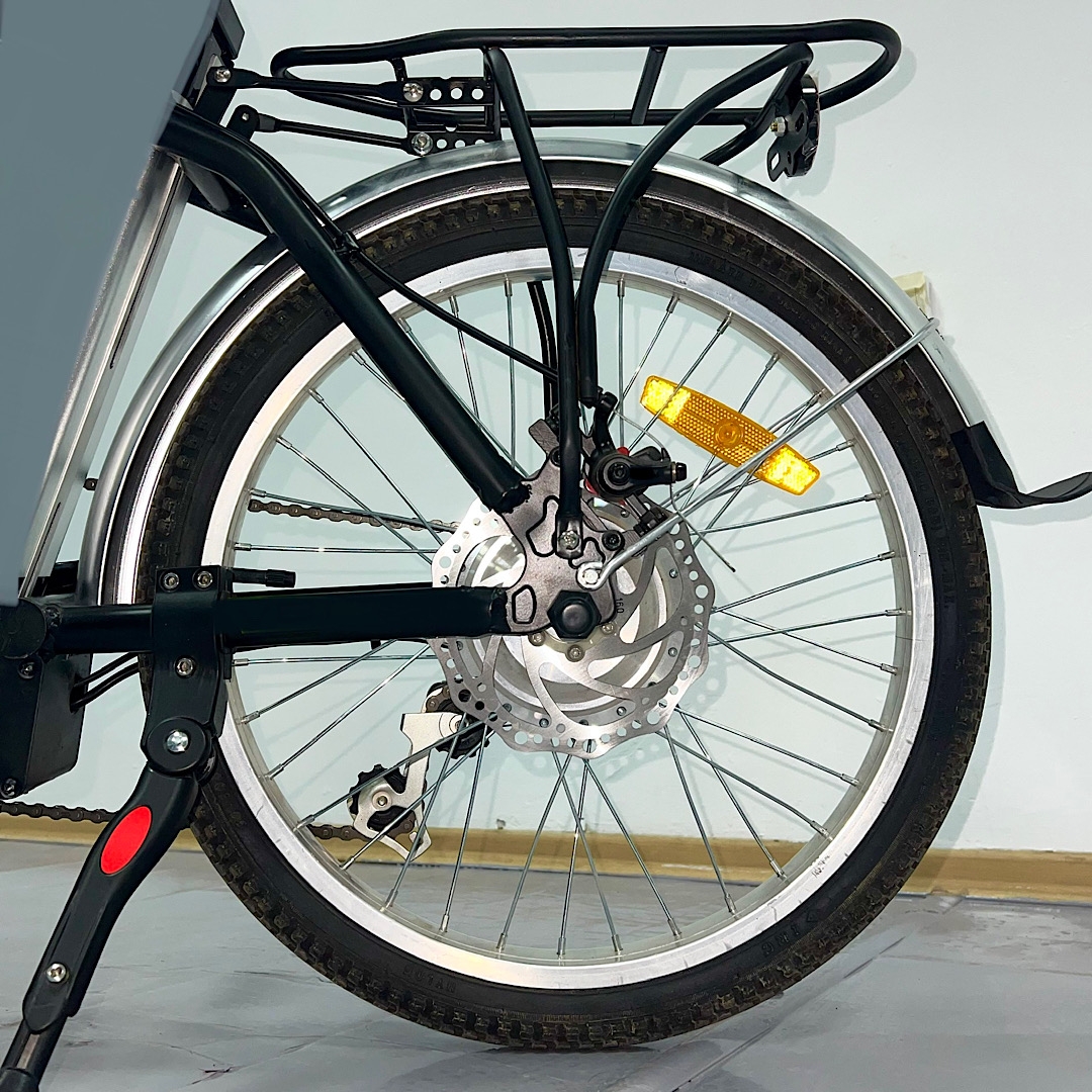 Допълнителна информацияPAS компютър , спирачка: предна дискова спирачка, задна дискова спирачка преден LED фар задна стоп- светлина супер олекотена конструкция и батерия лесен за сглобяване и разглобяване удобна кожена седалка заден багажник клаксон електронен дисплей за нивото на батерията степенка, компютър с многостепенно подпомагане на усилието с 5 възможни режима.